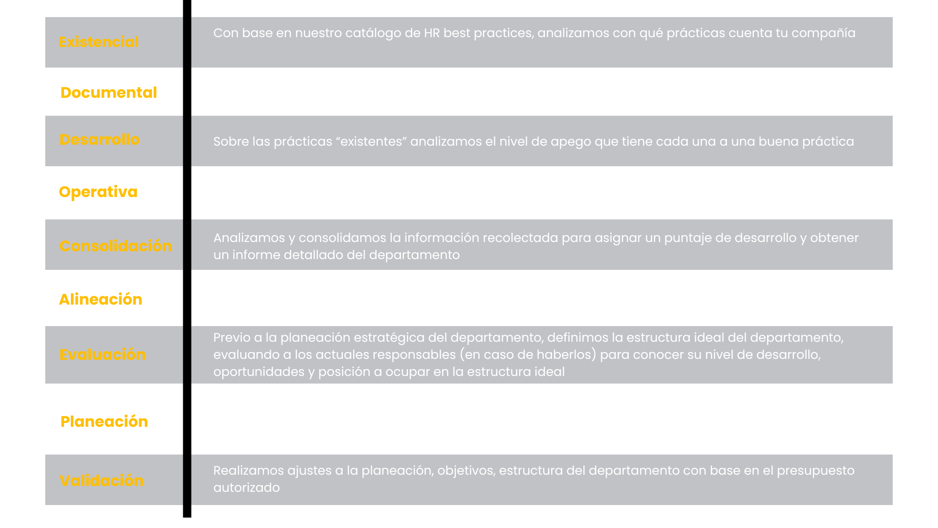 La ARH® está orientada a evaluar el nivel de desarrollo del departamento de RRHH contra el catálogo de mejores prácticas en RRHH, identificar las oportunidades de desarrollo y establecer los objetivos clave del área de manera cruzada con la posibilidad de inversión y voluntad de cambio de la organización a fin de diseñar acciones que permitan generar un plan de trabajo alcanzable según sus posibilidades.