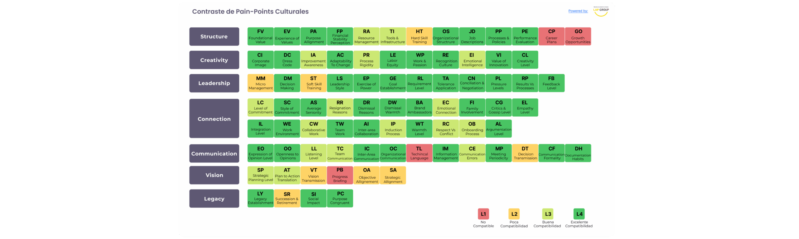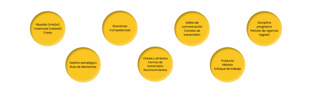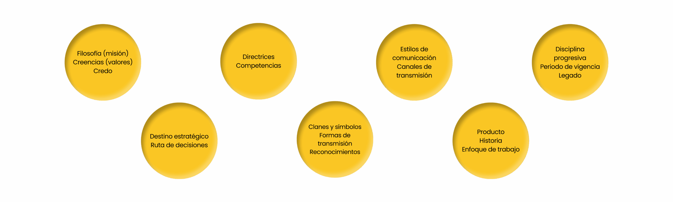 Con base a los estatutos generales de la cultura y la visión estratégica plasmada. Apoyamos en la definición de madurez ideal o deseado que cada uno de los elementos de la cultura corporativa debe tener en orden de acercar a la organización o al cumplimiento de sus objetivos.